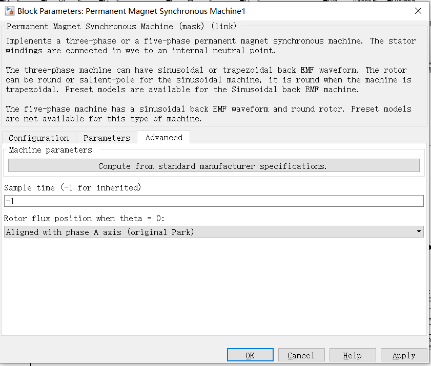 在Matlab2014版本之后,电机模型中就多出了一项选项卡来解决以上问题。