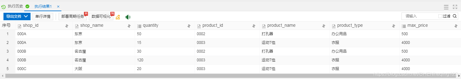 4、分别使用内连结和关联子查询每一类商品中售价最高的商品。
