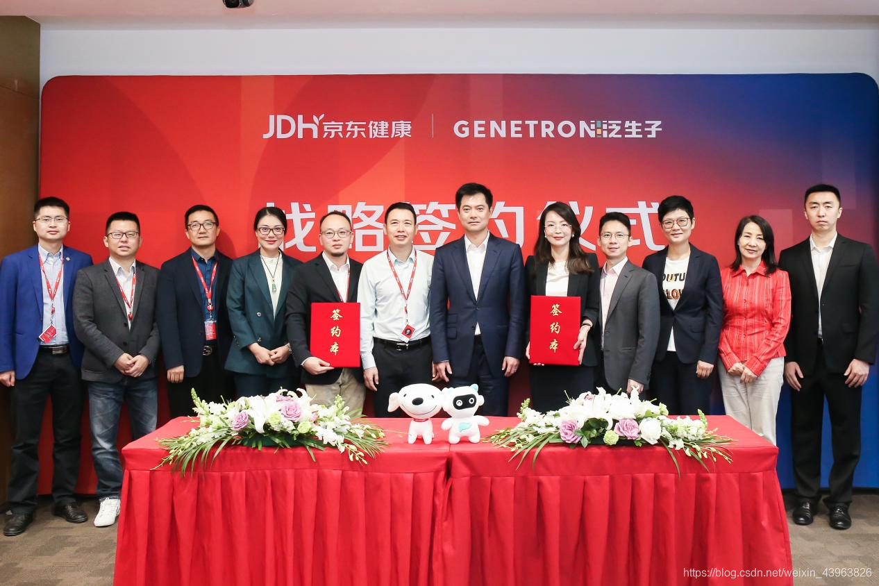 京东健康医保医疗发展部总经理张震龙,京东健康互联网医疗部总经理肖建波,京东健康健康城市总经理刘明彦,京东健康智慧医疗部总经理王东媛,京东健康消费医疗部总经理王宇方,京东集团高级副总裁、京东健康CEO辛利军,泛生子联合创始人兼首席执行官王思振,泛生子高级副总裁雷丽,泛生子首席财务官徐策,泛生子副总裁滕琳,泛生子副总裁张凤玲,泛生子早筛事业部战略产品高级总监付天辰