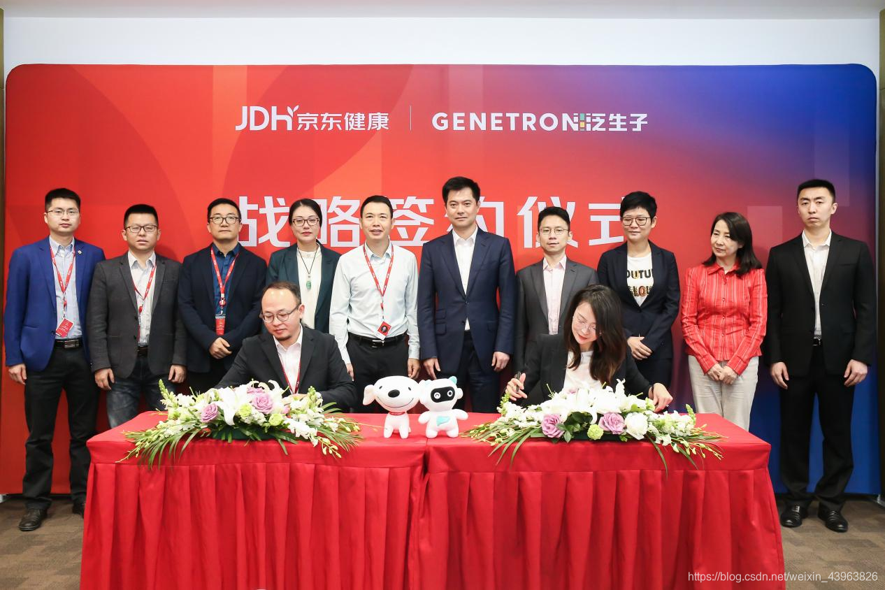 图为:泛生子与京东健康战略合作签约仪式隆重举行,领导嘉宾从左到右依次为: