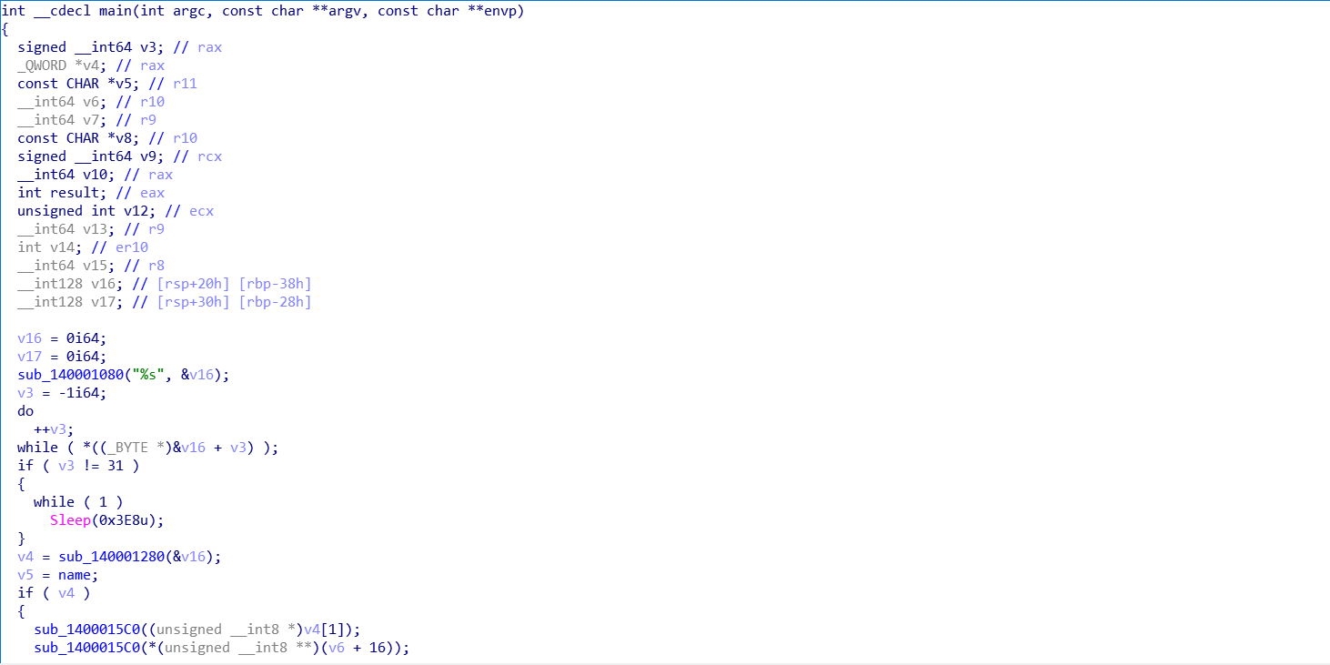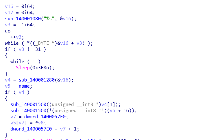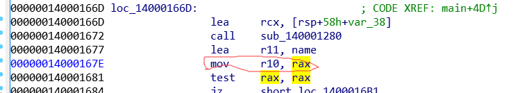 但是有个问题,这个sub_1400015C0(v6+16),在ida f5后的代码中,没看到对v6进行了赋值操作。这个v6对应的是r10,查看ida中的汇编代码发现,其实是有赋值操作的,但是F5后的C代码中却没有关于v6的赋值操作,ida难道有bug嘛?