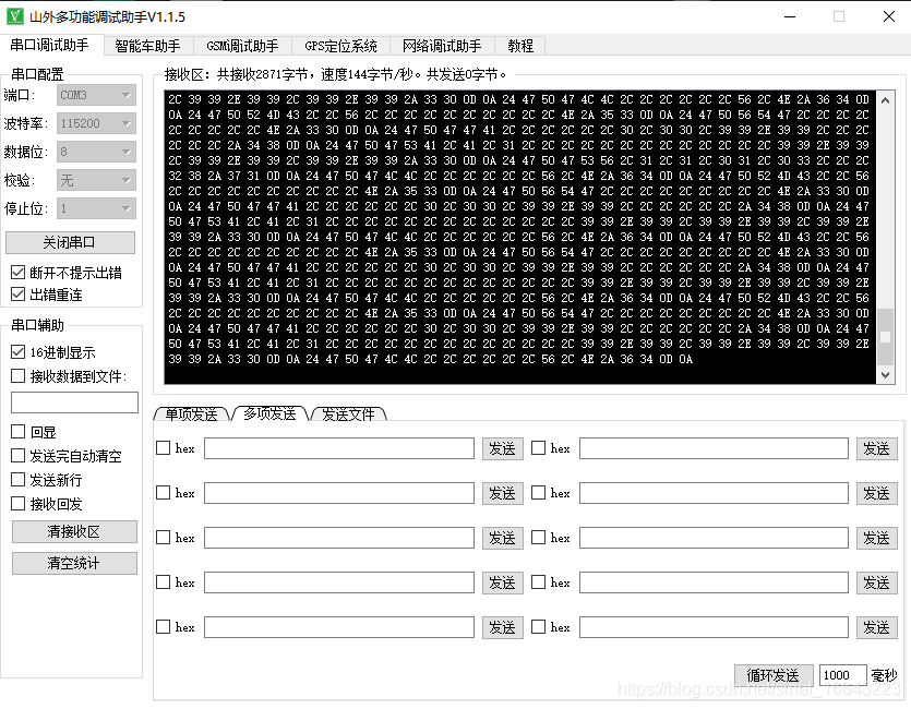 这是用串口助手接收到的信息,这还是在室内的。