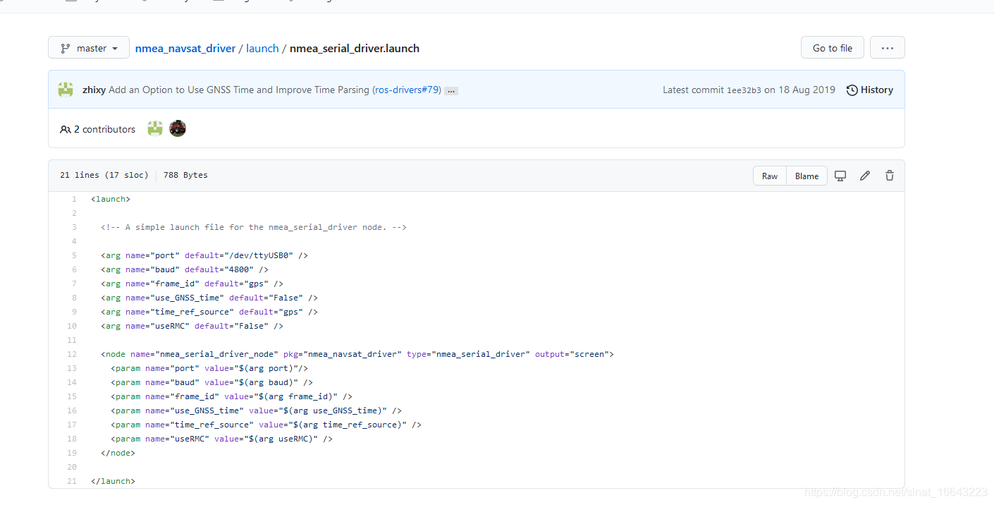 我这个GPS模块是NEMA协议的那么用这个功能包应该是可以的,所以就没必要单独找什么GPS的串口驱动了。我去Github搜了下搜不到法系这是个功能包,都不用下源码,直接apt-get install就可以了好像,那岂不是太方便了。还是有Github的 https://github.com/ros-drivers/nmea_navsat_driver.git