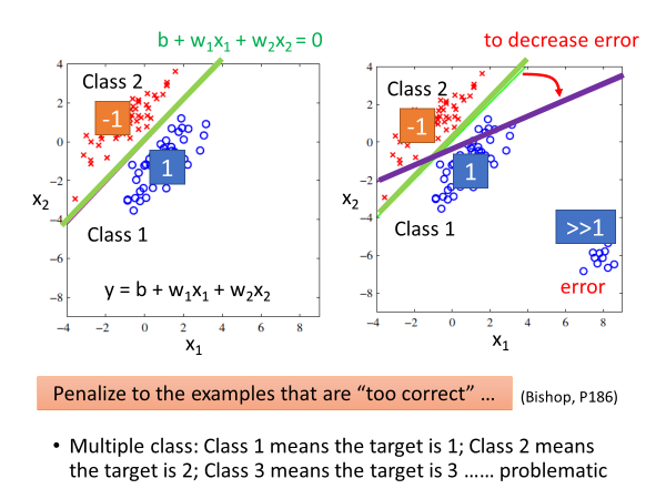 用回归来做二分不好的原因 数据偏移大时 结果不好分类