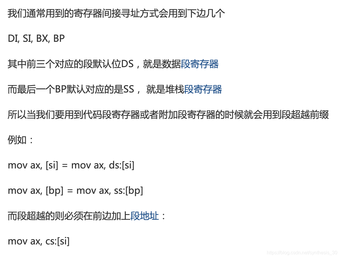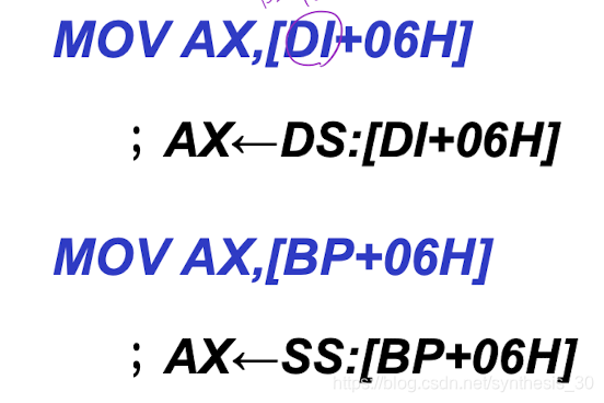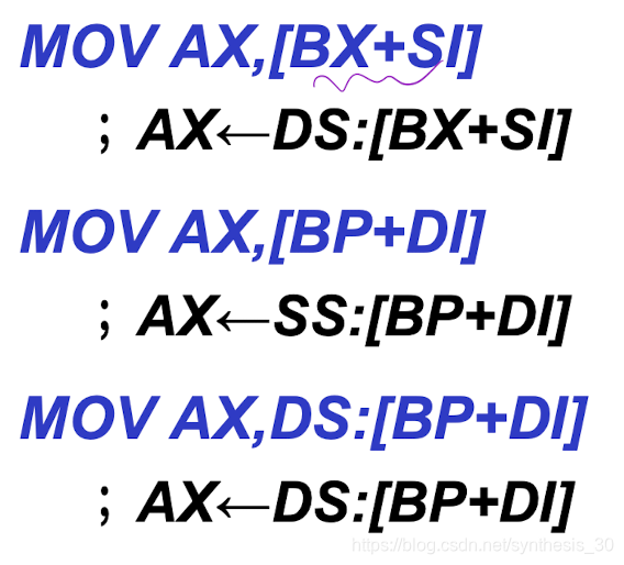 源操作数用寄存器SI寻址,默认在数据段DS中,但允许段超越