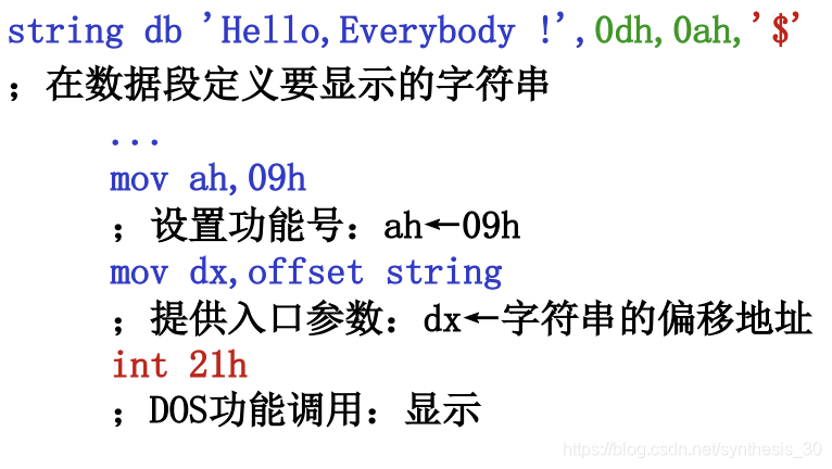 string db 'Hello,World!',0dh,0ah,'$'; 8.定义字符串