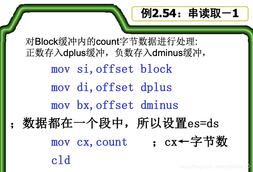 定义:串操作指令采取比较特殊的数据串寻址方式,操作主存连续区域的数据