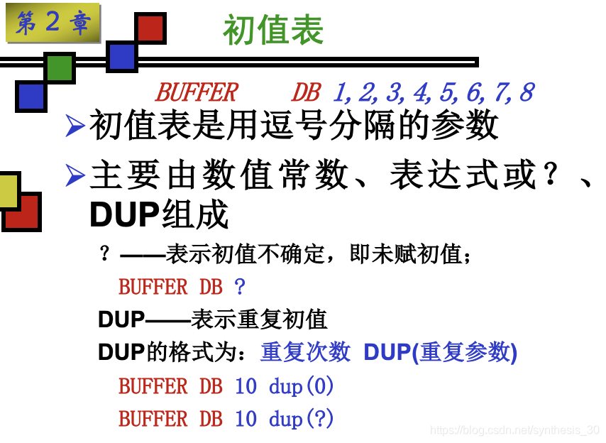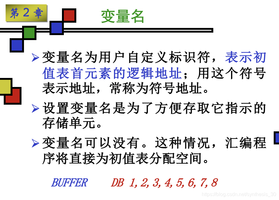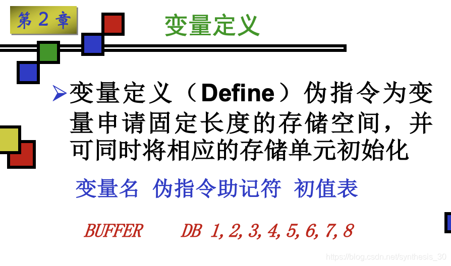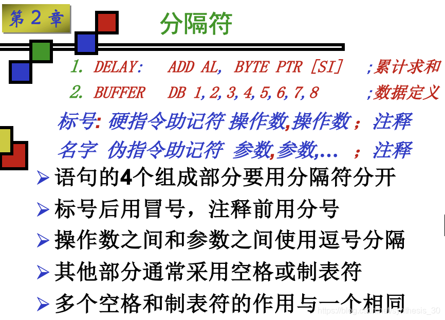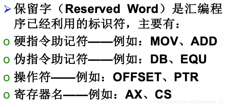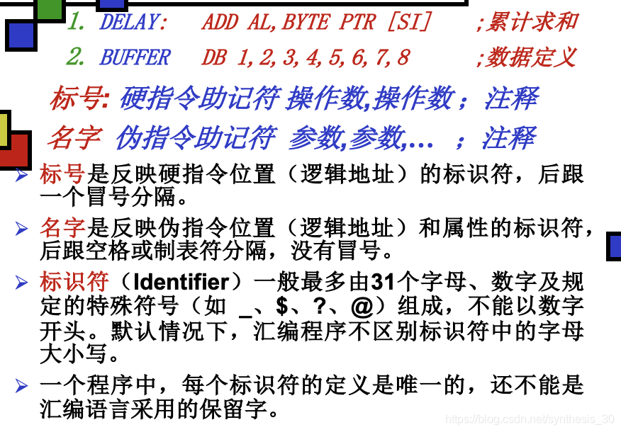 (2)说明性语句——由伪指令构成的语句,它通常指示汇编程序如何汇编源程序