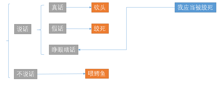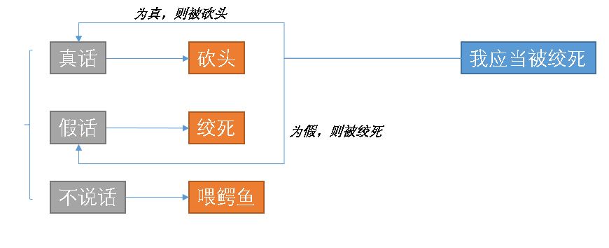 国王抓住一个小偷,对小偷说你还能说一句话,如果这句话是真话你会被砍头;如果这句话为假话你会被绞死,如果你不说话会被拉去喂鳄鱼。