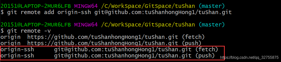 - 使用SSH地址创建地址别名,命名为origin-ssh