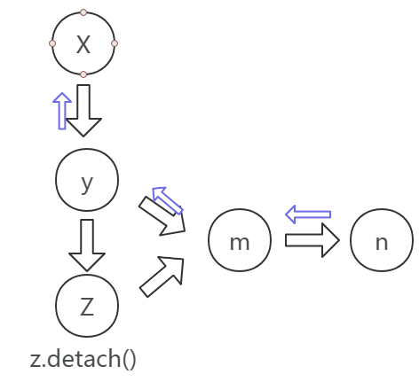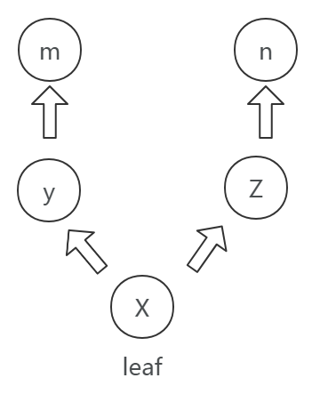 根据这段代码画出计算图,x是叶子节点,y和z都不是叶子节点