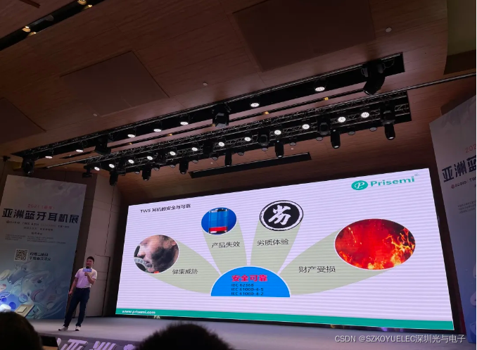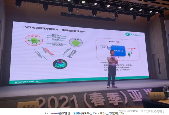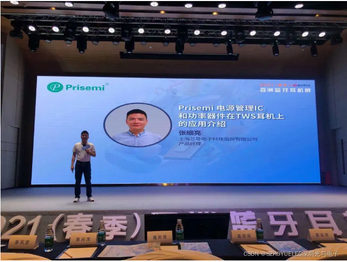 现场,我司产品经理张细亮以“Prisemi电源管理IC和功率器件在TWS耳机上的应用介绍”为主题发表精彩演讲,获得了在场观众的阵阵掌声。