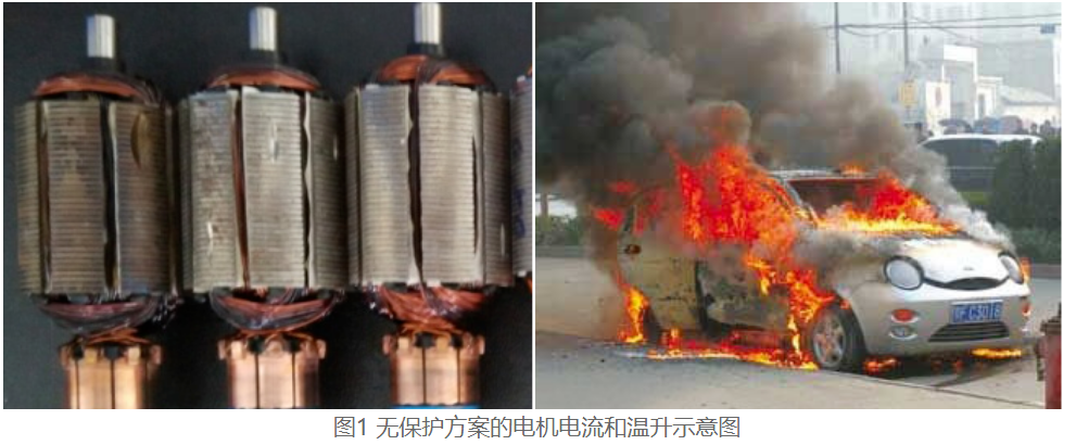如图1所示,在电机遇到故障,发生卡死或堵转等情况下,电机线圈产生大量焦耳热,若不及时切断电机电流,电机温度失控,轻则电机过热烧毁,重则引起汽车燃烧事故。
