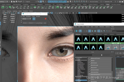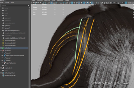 毛发制作使用xgen进行盘发的制作,先用xgen搭建头发的架构,根据不同头发的效果进行毛发的深入调整,使用多个描述集的方法,制作特殊发型效果。