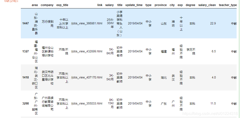数据清洗,新增经验年限、学历要求,清洗后的数据如下图所示: