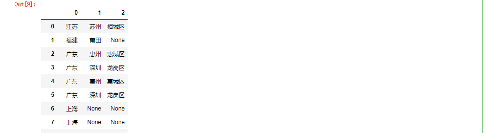 首先进行清洗出省份、城市,我们看到省份、城市的数据格式是不一致的,我们在这里要统一格式,代码如下: