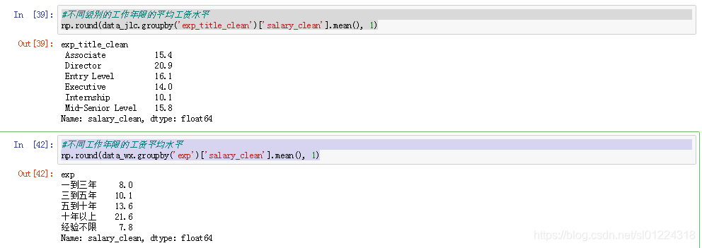 np.round(data_jlc.groupby('education')['salary_clean'].mean(),1)data_wx.loc[data_wx['degree']=='中专', 'degree'] = '高中'