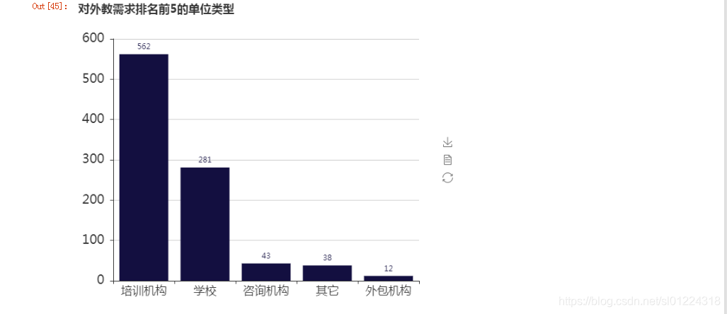 首先第一步是使用concat方法把“幼儿园、中小学、外语培训、职业学院”数据进行合并成一个表格,具体代码如下: