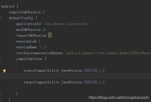 compileOptions {sourceCompatibility JavaVersion.VERSION_1_8targetCompatibility JavaVersion.VERSION_1_8}