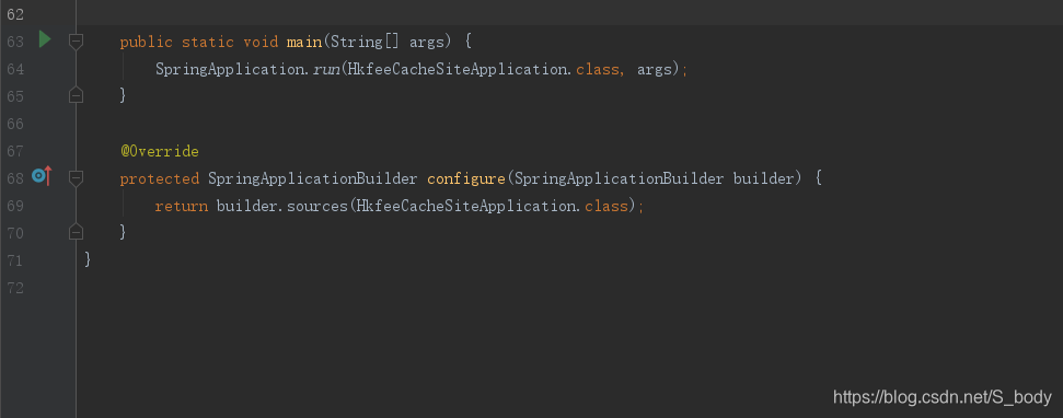 Spring Boot 项目必须实现 SpringBootServletInitializer 接口的 configure() 方法才能让外部容器运行 Spring Boot 项目,启动类继承org.springframework.boot.web.servlet.support.SpringBootServletInitializer