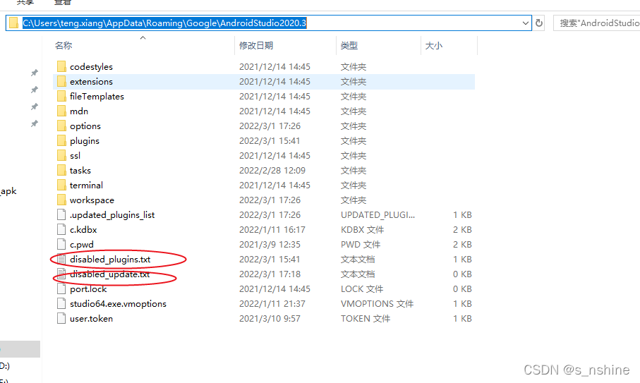 2.找到以下路径删掉以下红圈文件即可(注意确认删除的是不是在使用的studio版本,因为可能装过多个studio,会有多个这种文件)