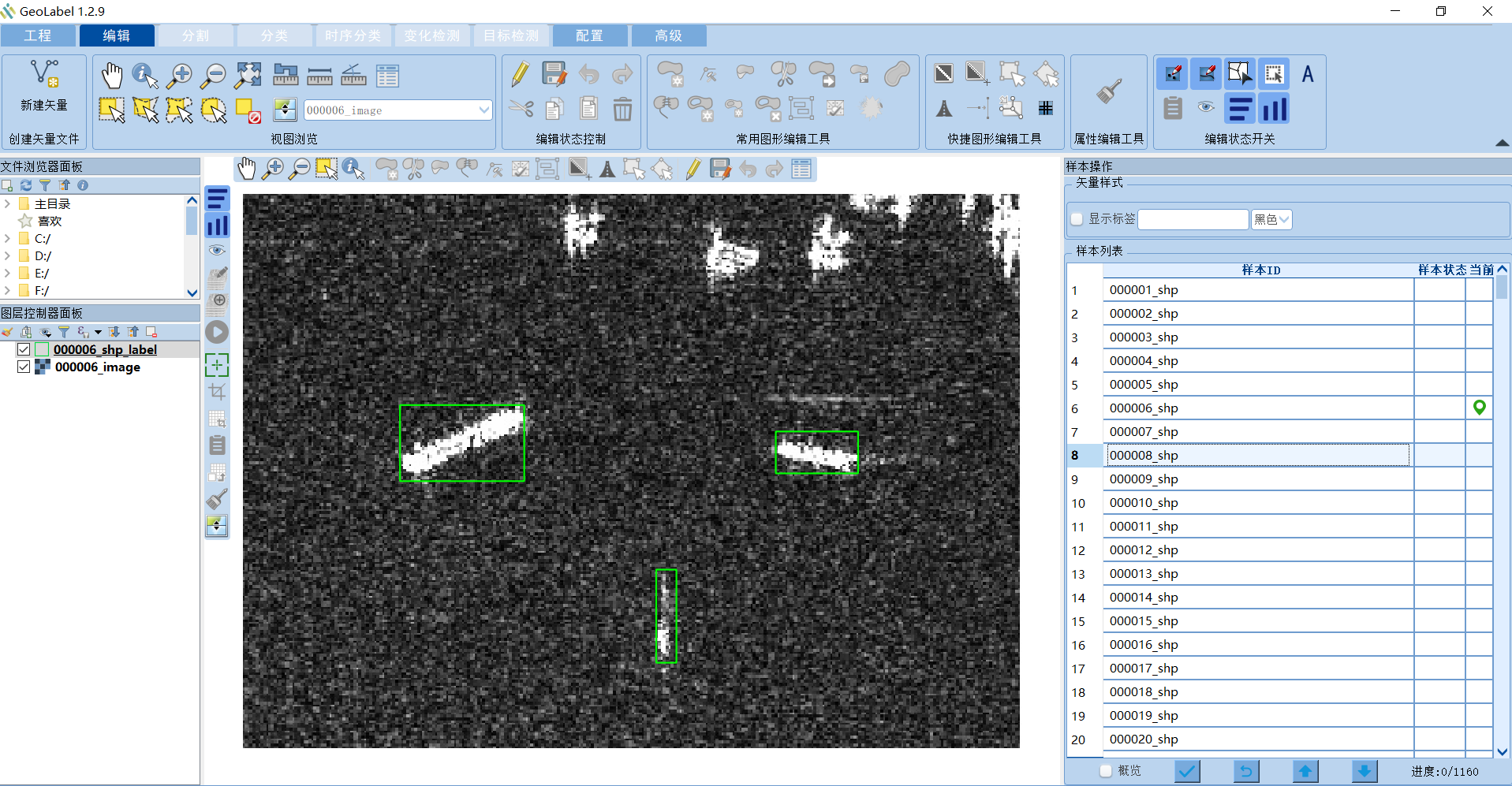 每个标注人员领取相应的空样本进行标注,标注人员可以使用任何工具进行标注,如ArcGIS。当然,希望标注人员也使用GeoLabel进行标注,只需在“工程-导入”菜单中导入领取到的样本,即可使用GeoLabel提供的便捷标注功能进行快速标注。