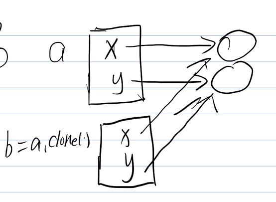 浅拷贝:若被拷贝的对象中有对其他对象的引用,那么直接将那个引用复制过来,而不是将它做拷贝在复制过来,如图所示: