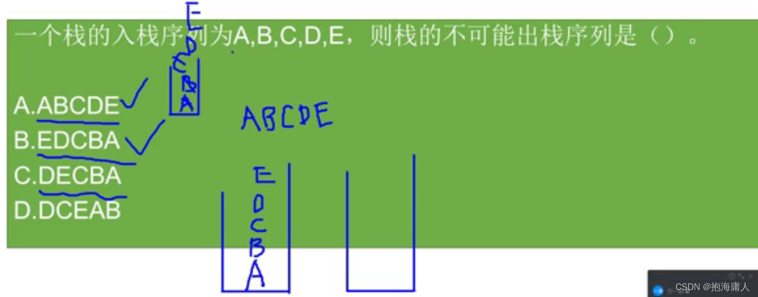 答案为d。因为a在b的下面。。不可能在b之前拿出来。。