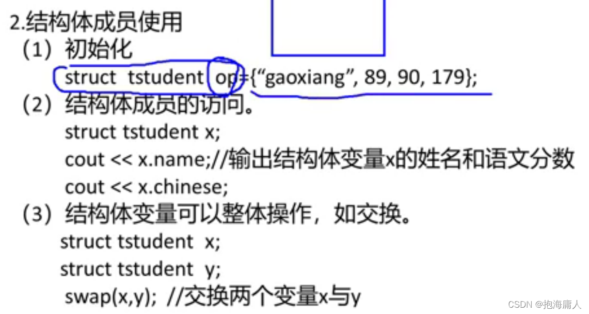 结构体与int类型差不多。。当成int看待。只不过它是一串数组.