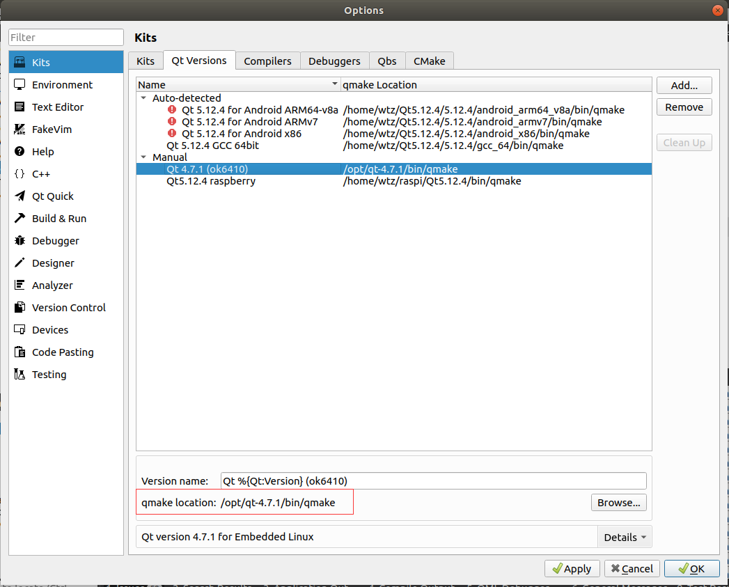 Qt version最具有迷惑性了,其实它就是交叉编译工具编译的qmake