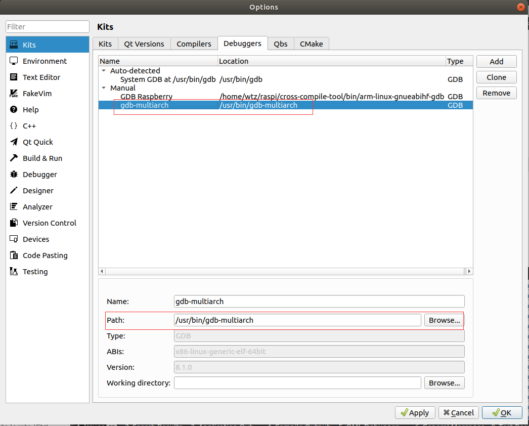 Debugger:gdb可以填交叉编译工具里的,我这边用的是支持多个cpu的
