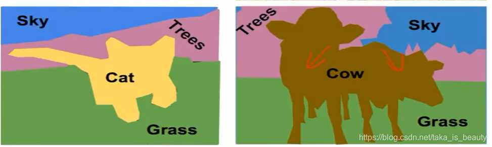 只对每个像素距离区域,进行预测类别,只关注像素的意思这就是头牛,而不管它的其他含义(比如几头什么什么样的牛......)
