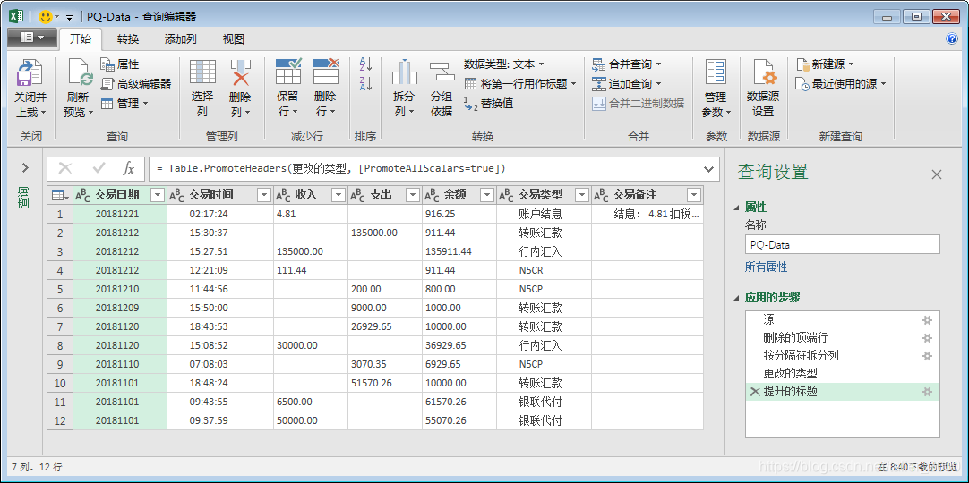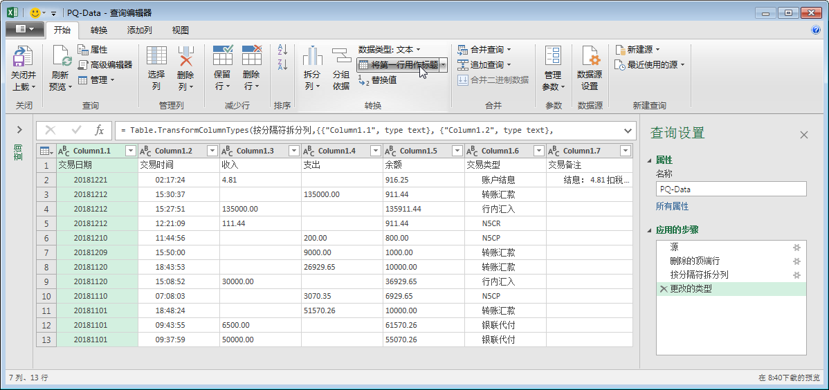 - 部分字段数据中有多余的空格,“交易日期”字段有前导空格,需要确认PQ是否可以剔除这些空格