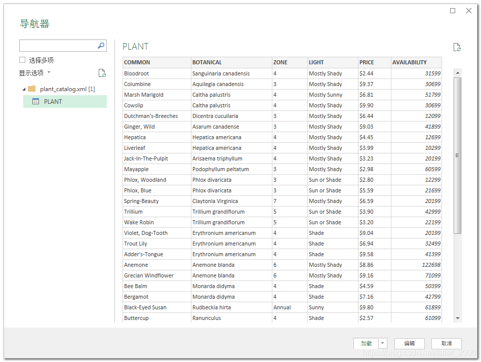 在【导航器】对话框左侧单击【PLANT】节点,右侧可以查看数据,单击【加载】按钮导入工作表中。