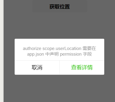 本文主要是介绍authorize scope. userlocation需要在app.json中声明permission字段,希望对大家解决编程问题提供一定的参考价值,需要的开发者们随着小编来一起学习吧!