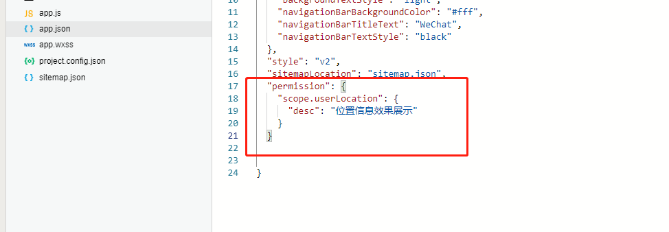 "permission": {"scope.userLocation": {"desc": "位置信息效果展示"}