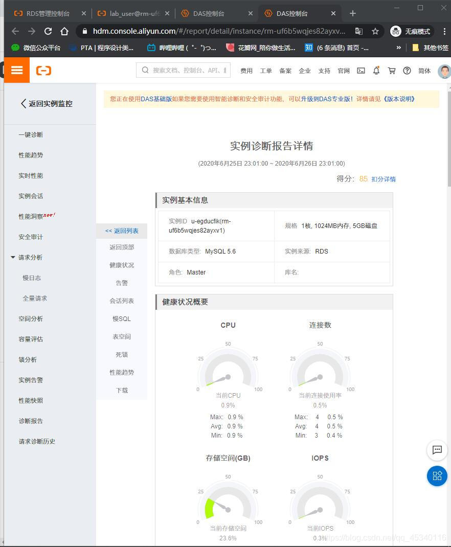 登录RDS数据库,创建数据库可以选择对应的账号,在数据管理DMS里可以进行数据库的操作和诊断。