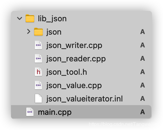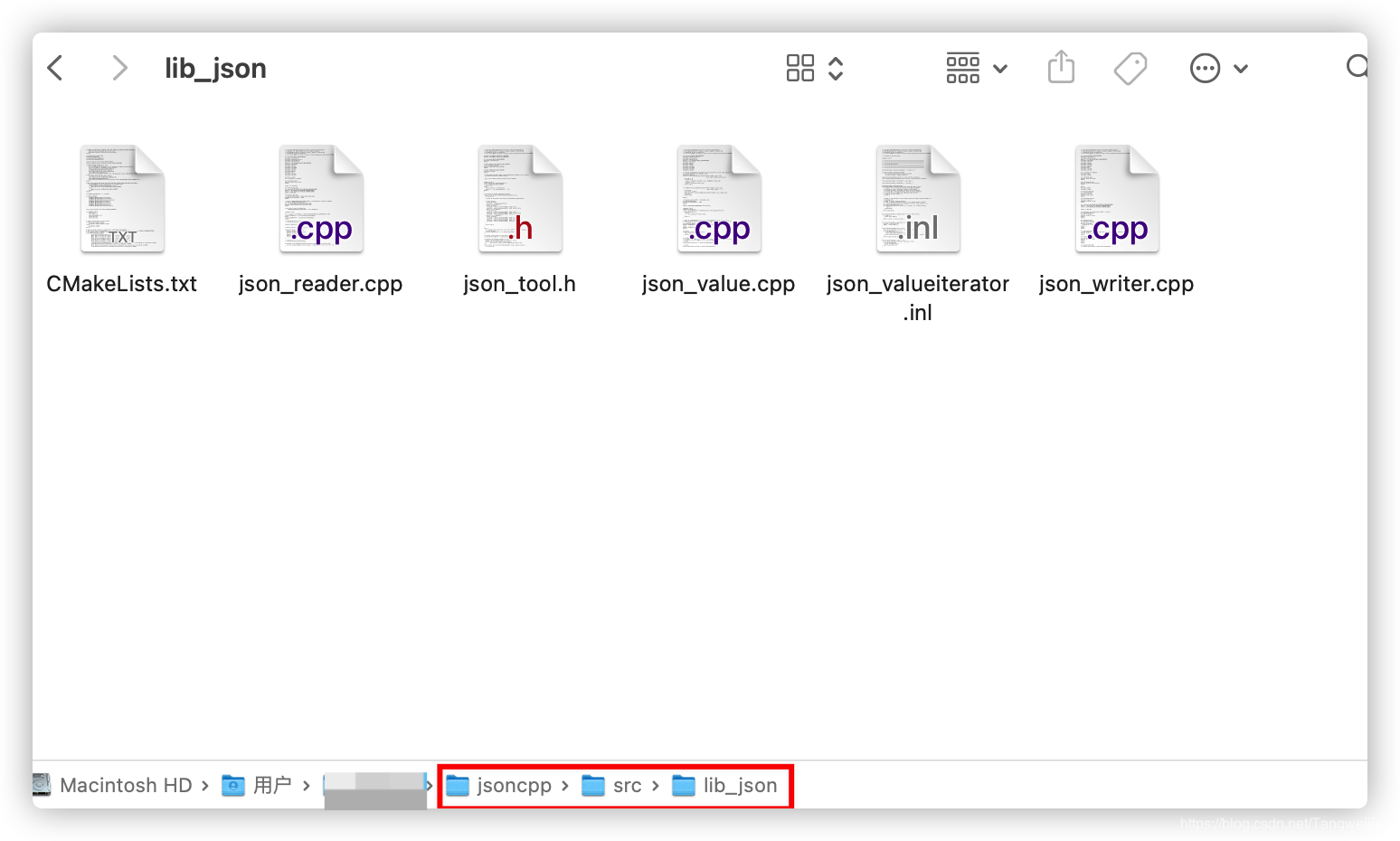 下载好后,当前地址会生成一个jsonapp文件,找出该目录下的头文件(.h结尾)和C++源码(.cpp结尾)
