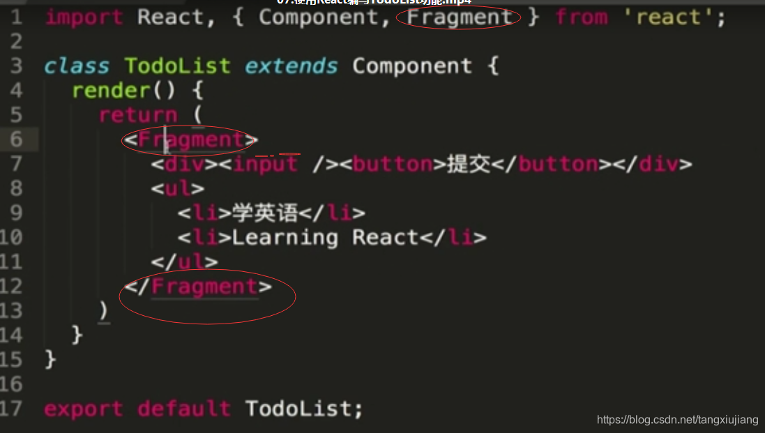 在定义React组件的时候,render()函数返回的html必须只有一个根元素,要想这个根元素不显示并且不占据页面空间,可以从react中引进Fragment组件