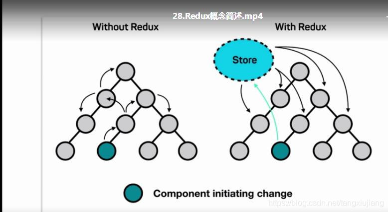 有了Redux之后,将组件的数据存储在Store里面,当组件的数据发生变化,Store里面的数据发生变化,然后接着改变其他组件的数据