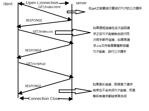HTTP有1.0和1.1版本,它们的区别就是1.1默认情况是长连接,而在1.0版本里需要通过头部Connection:Keep-alive来说明连接情况。如果不说明可能就是短连接。这里我介绍一下什么是短连接和长连接。