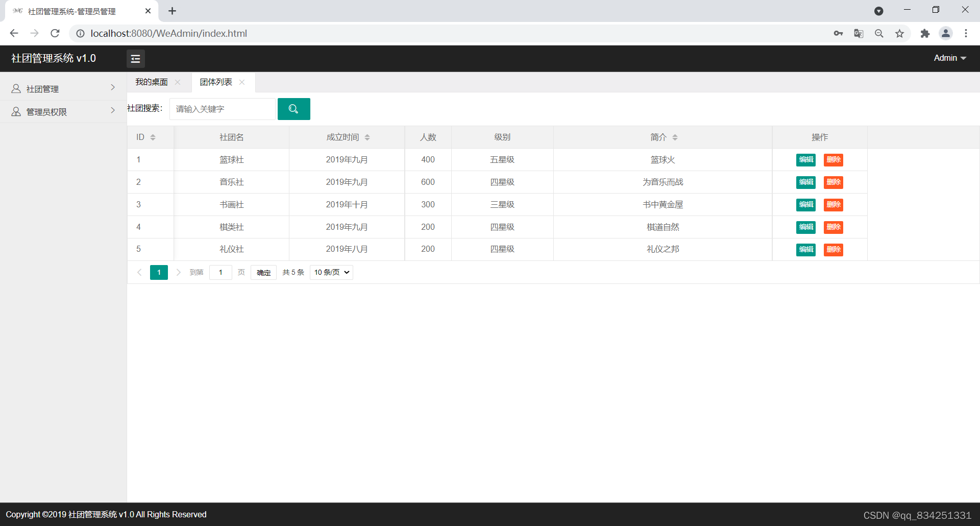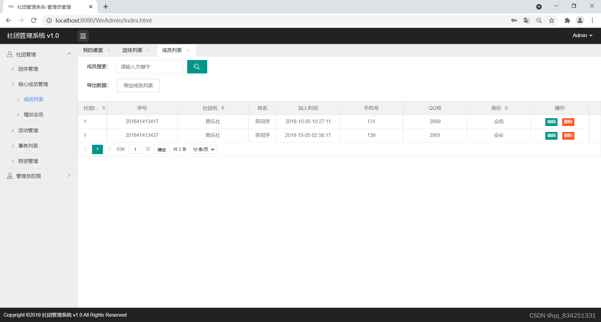 2)社团管理:对社团进行管理,如:修改社团人员等操作。