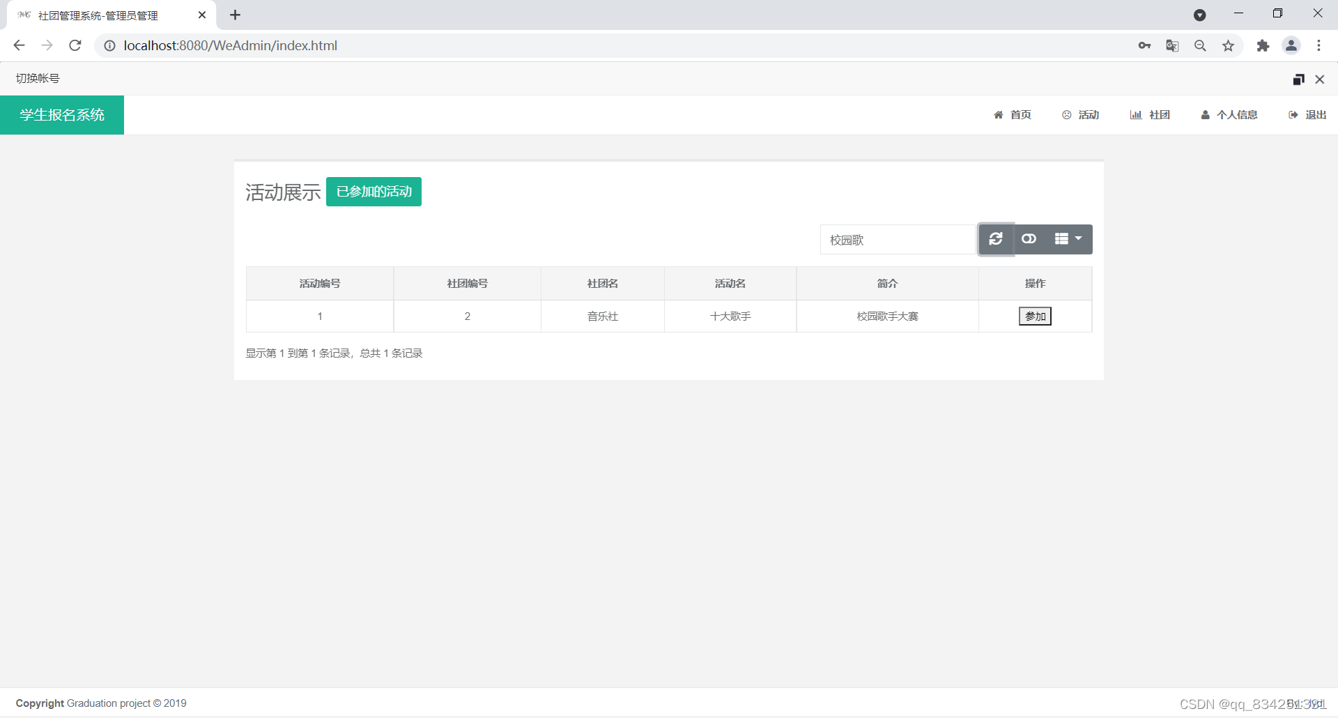 这篇关于基于Springboot的大学社团管理系统的文章就介绍到这儿,希望我们推荐的文章对编程师们有所帮助!