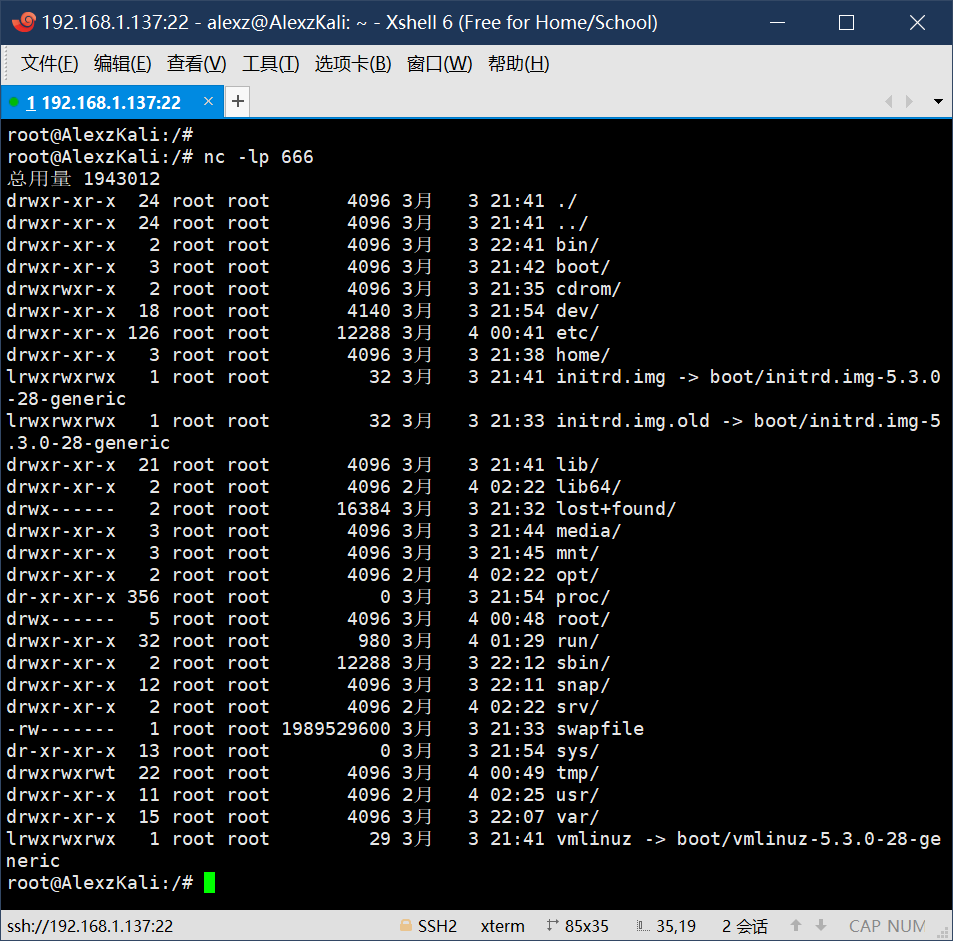 此时,另一端的控制台上就会出现被控制方的ll命令的结果: