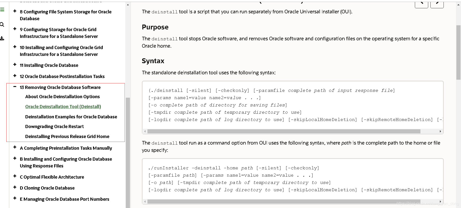 https://docs.oracle.com/en/database/oracle/oracle-database/12.2/ladbi/oracle-deinstallation-tool-deinstall.html#GUID-71E860C5-4E1E-4D2F-AFD1-141709A172C0