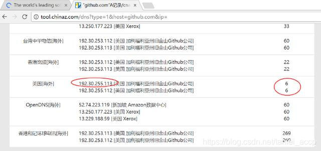 c、点击检测,在下方的结果列表中,选择TTL值小的IP地址192.30.255.113,如下图所示