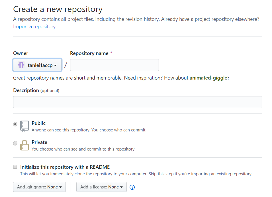 此时会让你创建一个新的仓库,如下图所示: