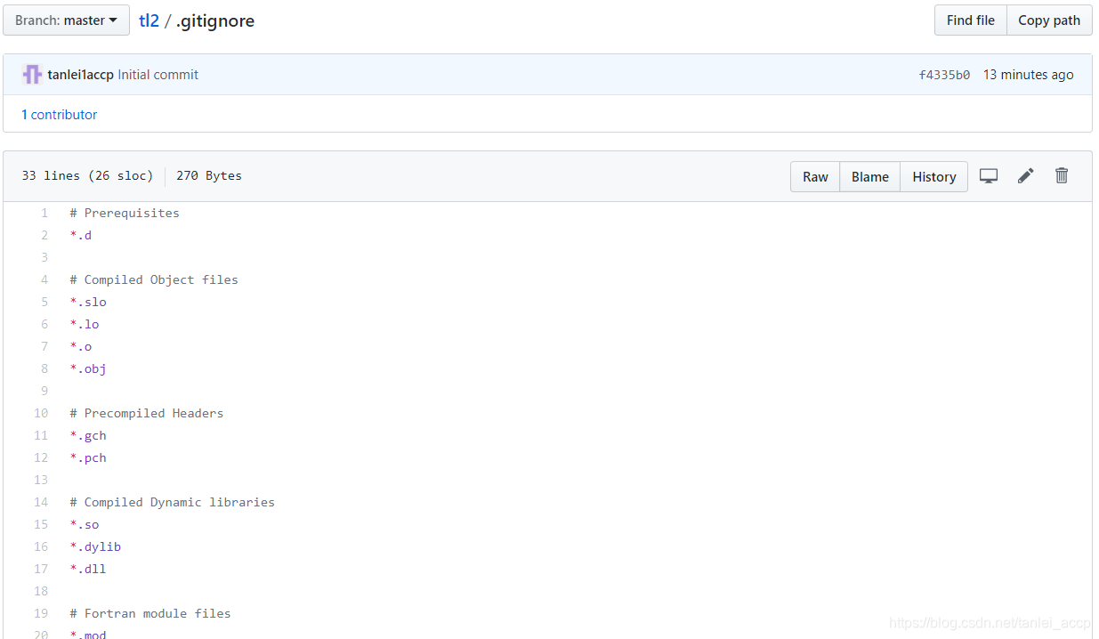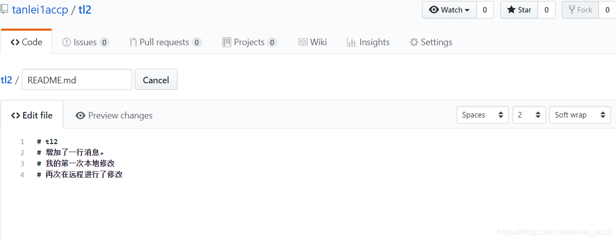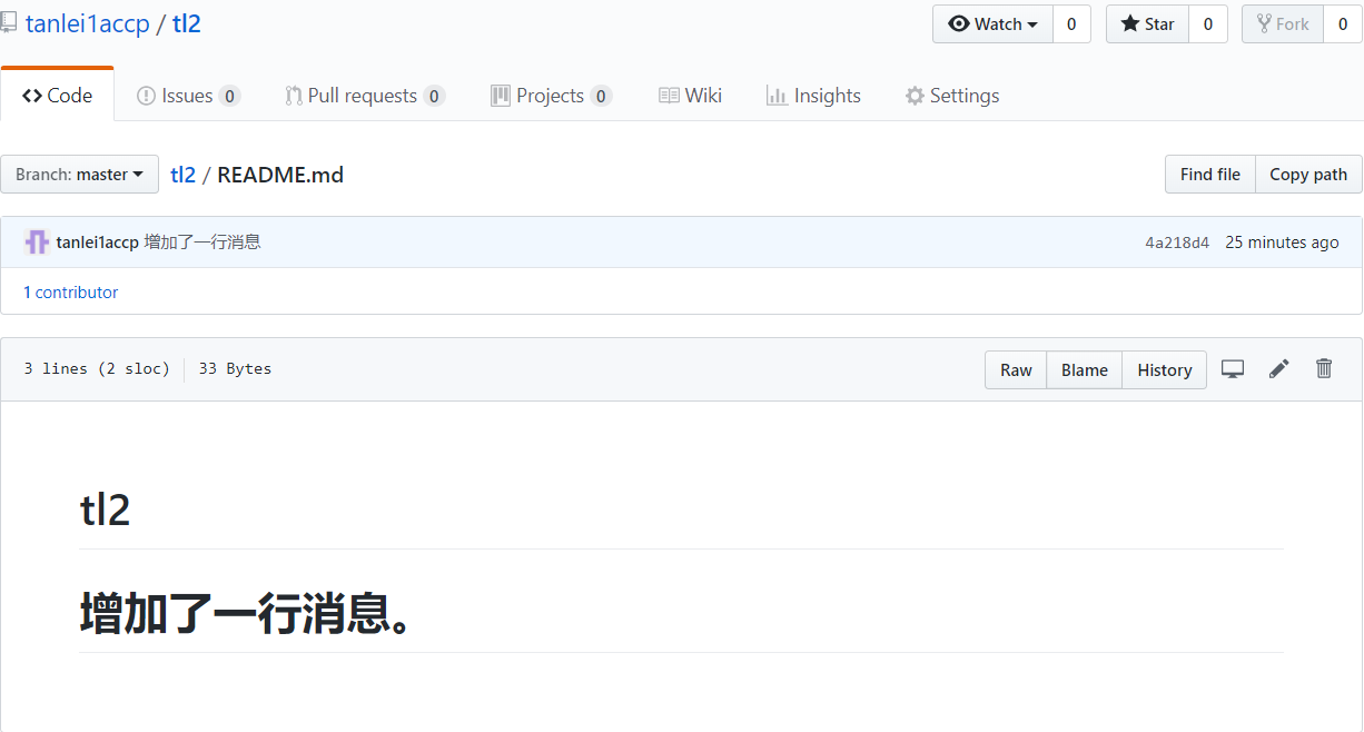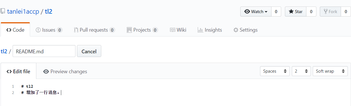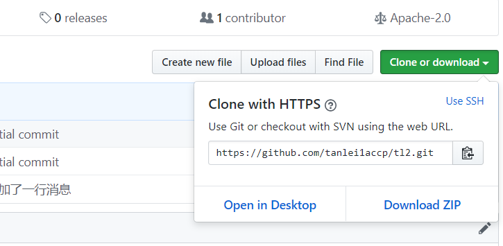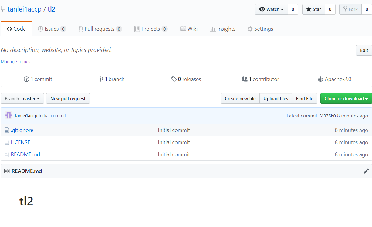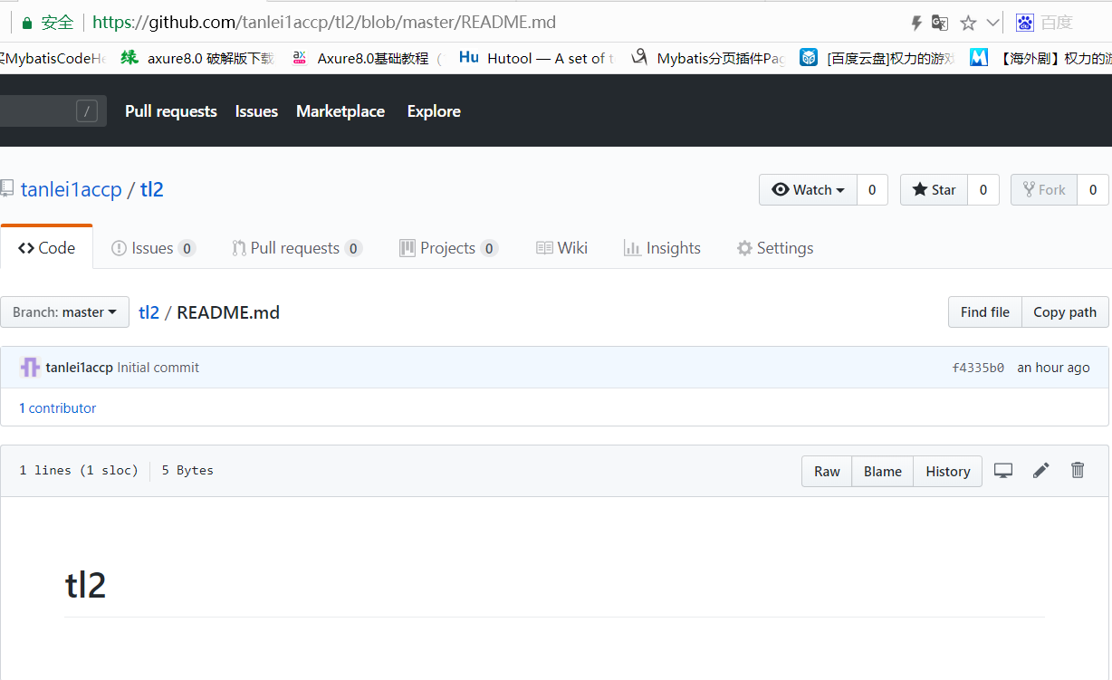 进入仓库页面,该页面的地址为:https://github.com/tanlei1accp/tl2,如下图所示: