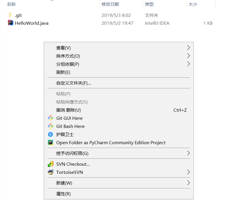 我们之前已经在本地创建了一个test仓库,里面有个HelloWorld.java的文件,如下图: