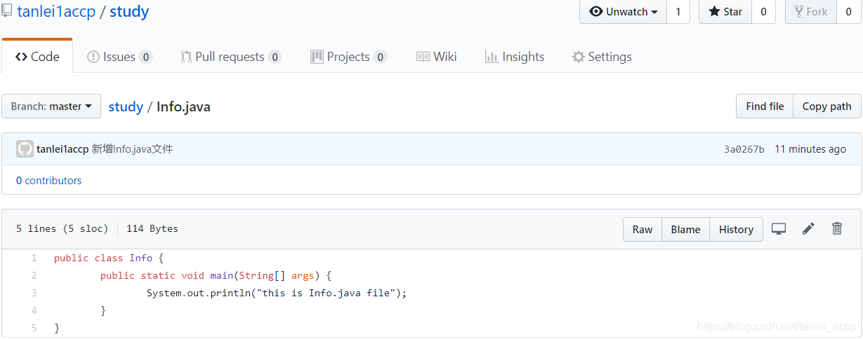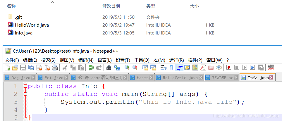 在本地仓库当中新增一个Info.java的文件,如下图:
